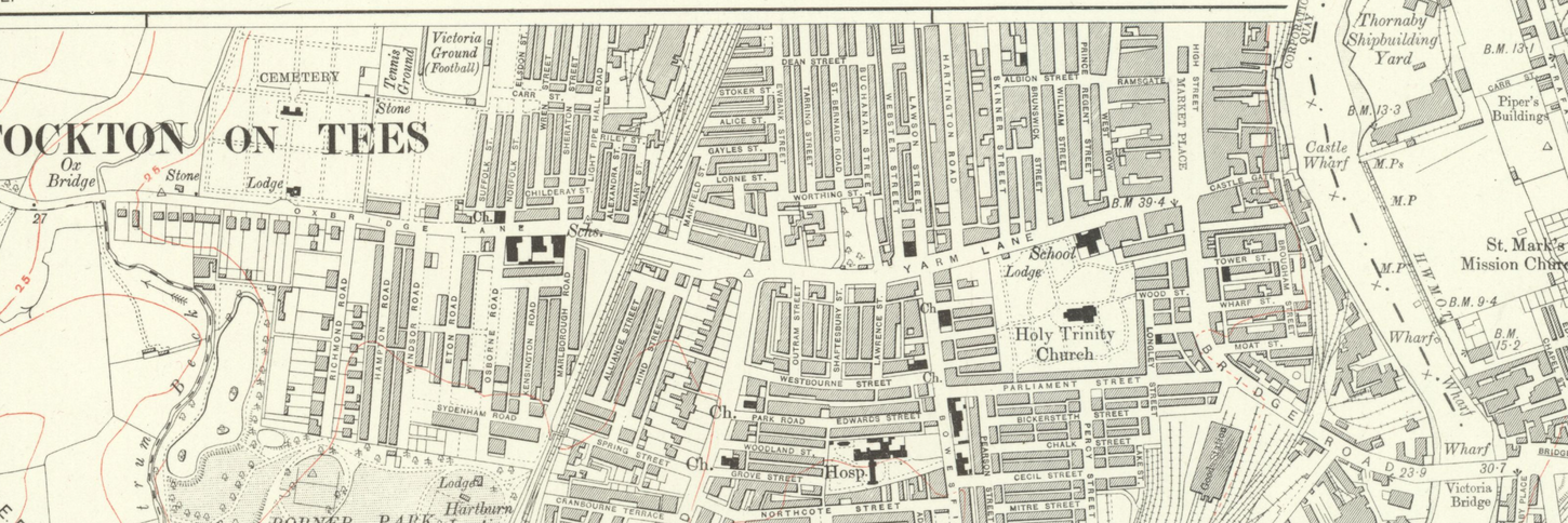 Stockton on Tees, which is much older than Middlesbrough, is found just west of the Tees. You'll probably go through it if you're on the train to Hartlepool or Sunderland. It was an Anglo-Saxon village. As it grew, a castle was also constructed around the 12th century that belonged to the Prince Bishops of Durham, more specifically a man named Hugh Pudsey. It was originally a hall, likely for Pudsey to dine and entertain guests, but was fortified due to potential attacks. It was first referred to as a castle in 1376.